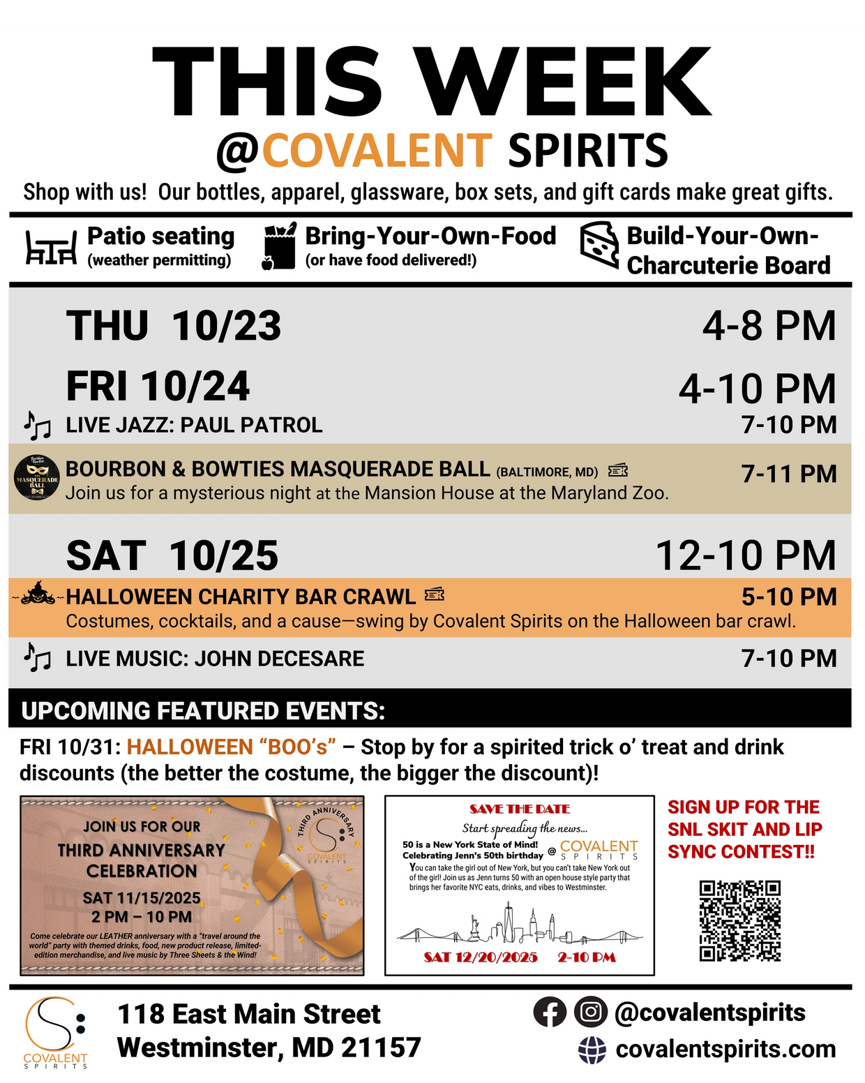 We arranged for corporate rates at the Best Western Westminster ($115+tax weekday / $135+tax weekend), which is less than 2 miles away. If you're interested, please contact the hotel directly (call 410-857-1900 or email the front desk). Ask for the "Covalent Spirits" rate. There are also local Airbnb options too.